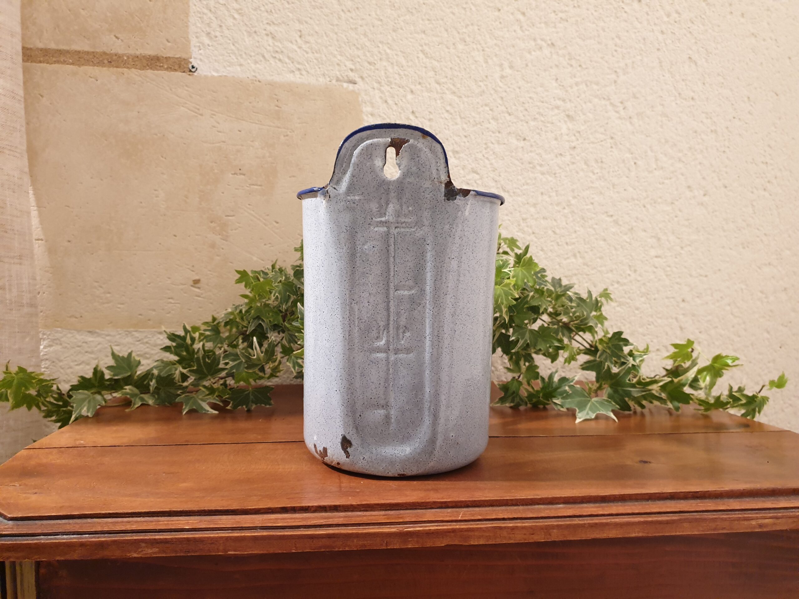Broc à Lavement Émaillé Bleu : Un Cache-Pot Vintage et Original