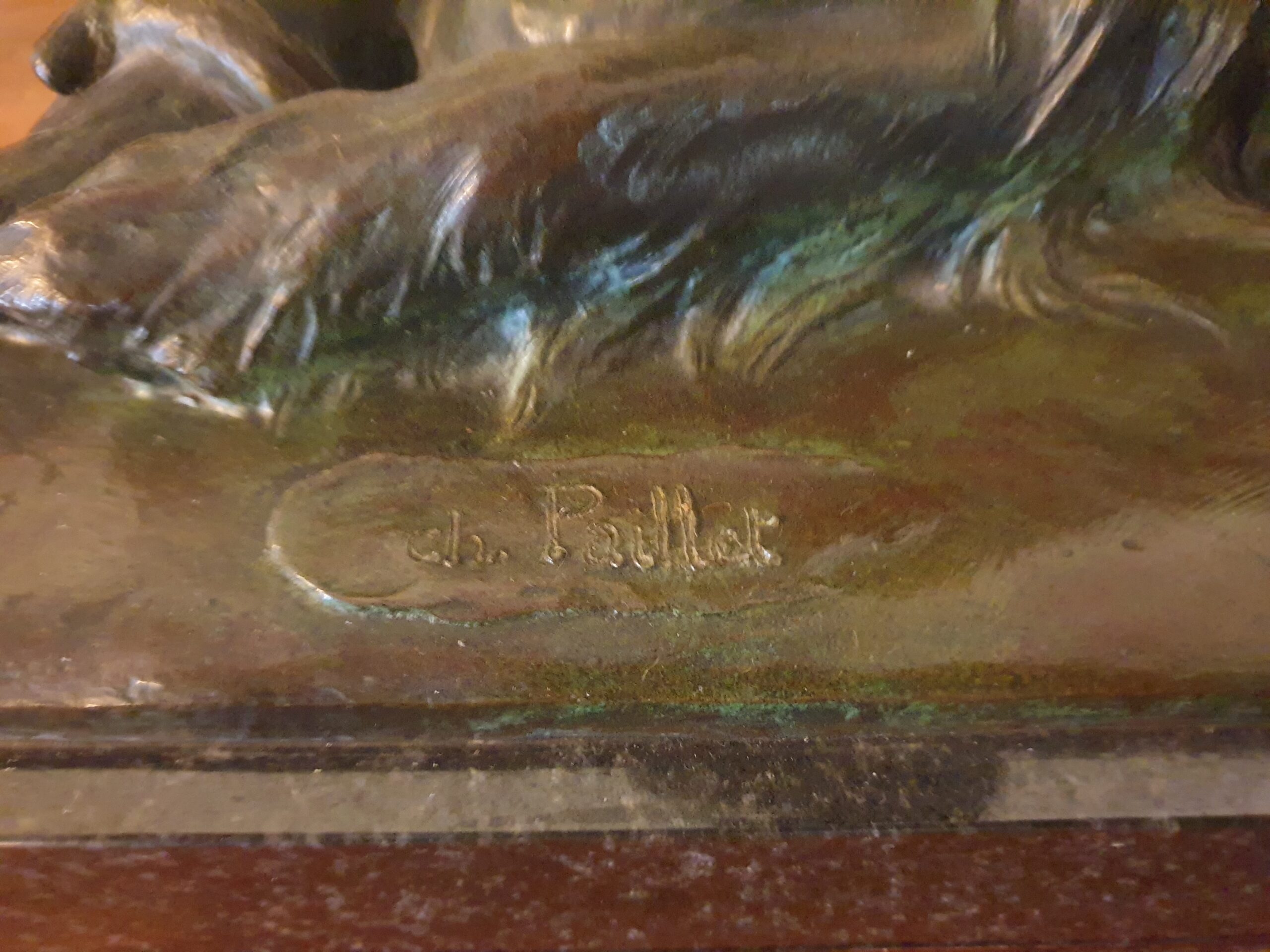 Charles Paillet, sculpteur animalier du début du XXe siècle, est reconnu pour sa capacité à retranscrire le naturel et l’émotion dans ses œuvres. Les Deux Amis illustre parfaitement cette maîtrise, capturant l’instant de tendresse entre les deux animaux.