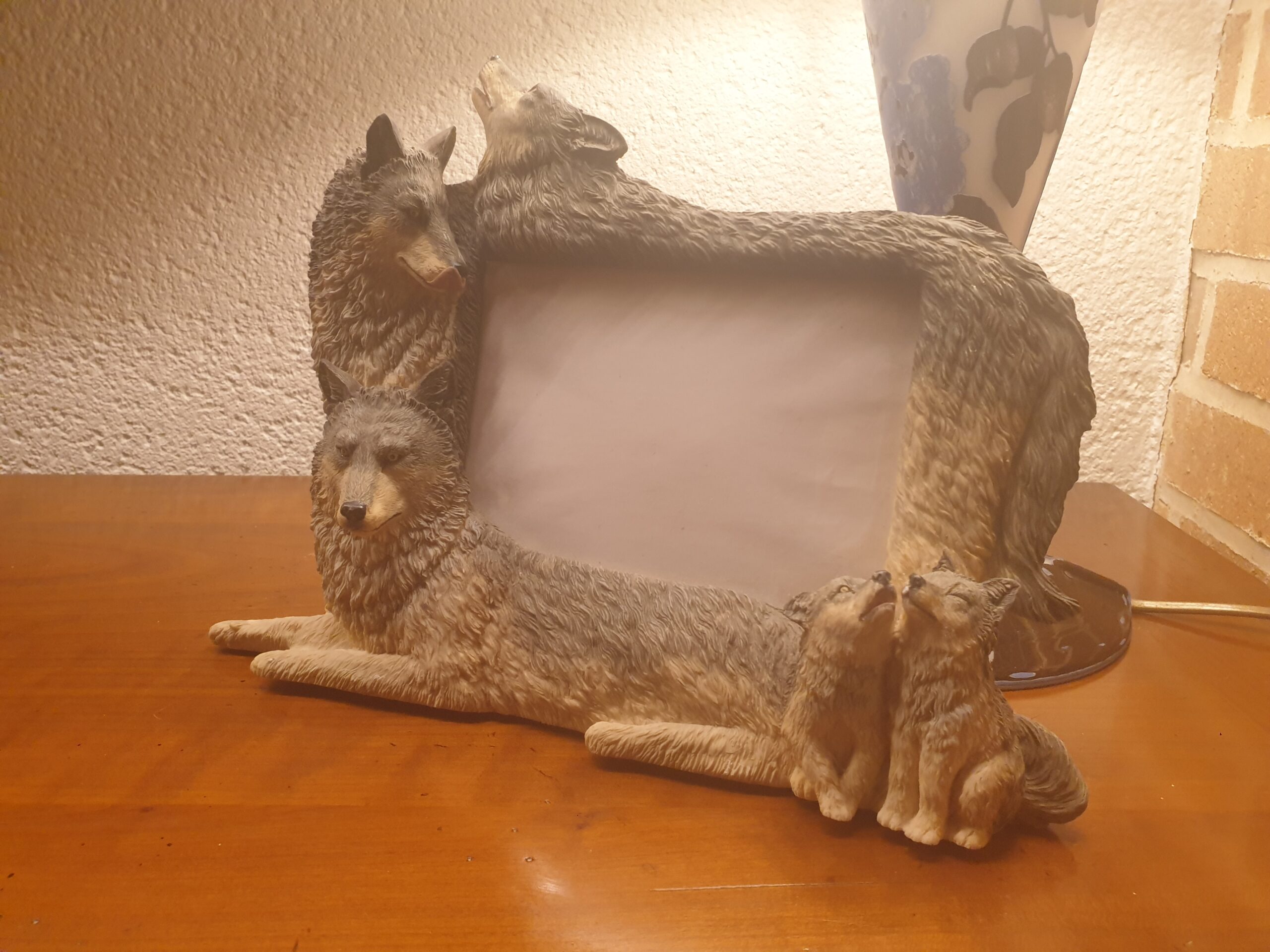 Cadre photo aux loups en résine