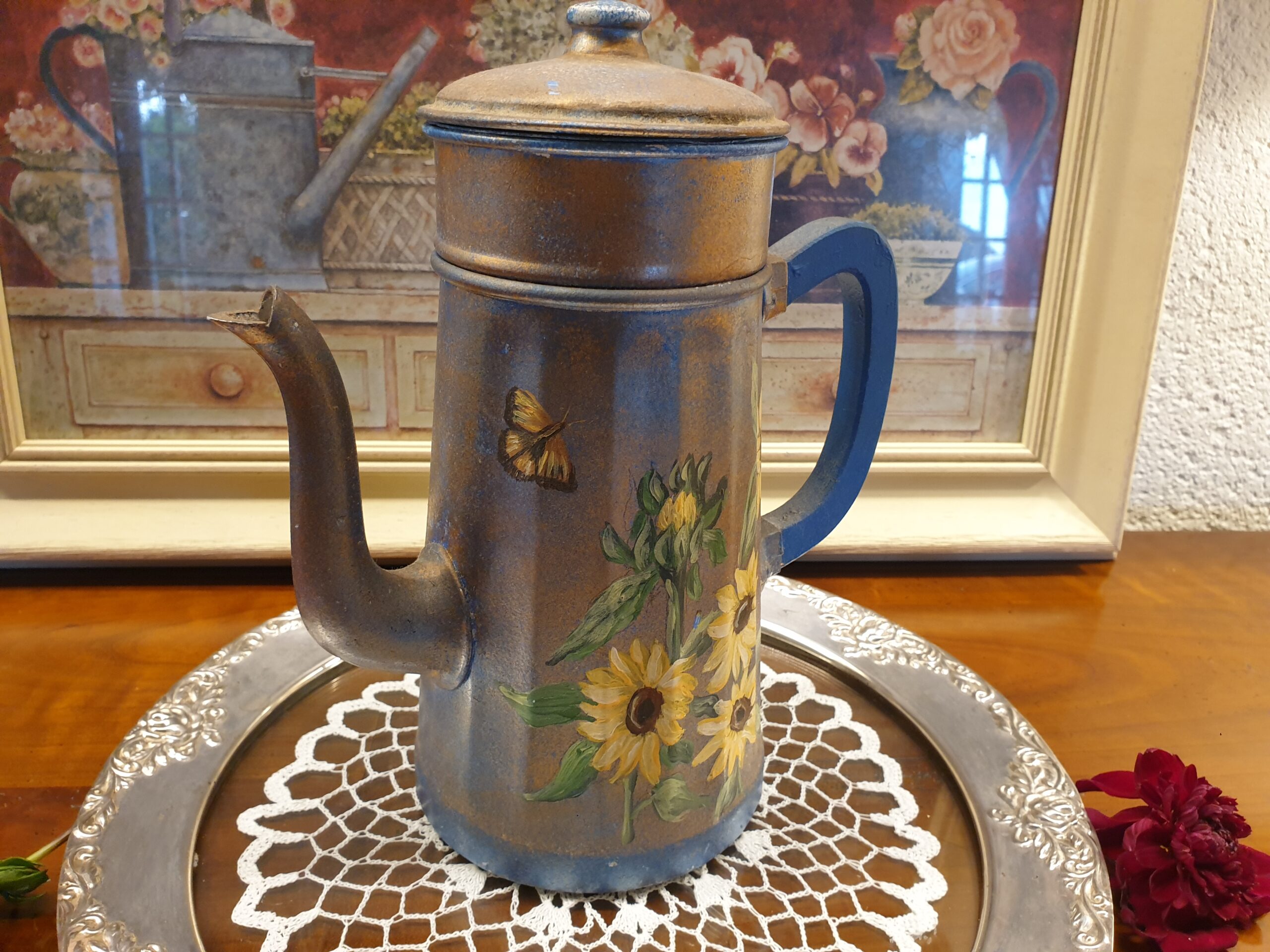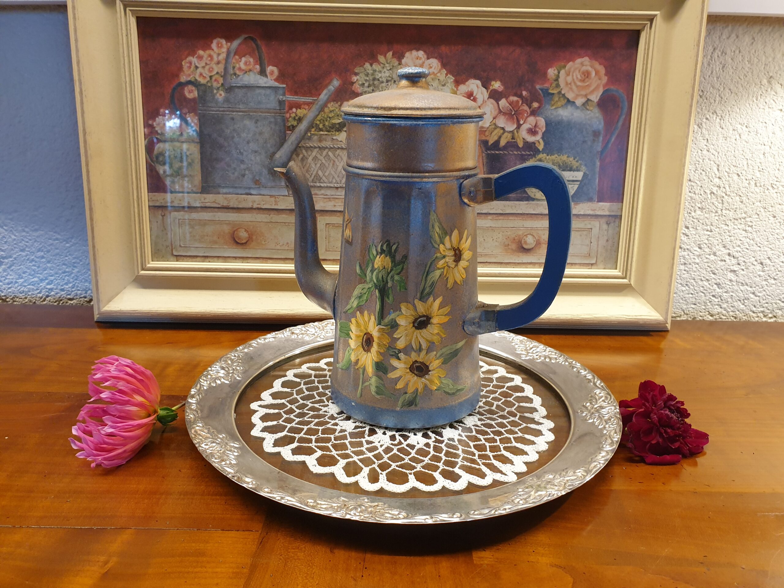 Ancienne Cafetière « Le Trèfle » Peinte à la Main : Un Charme Authentique et Solaire