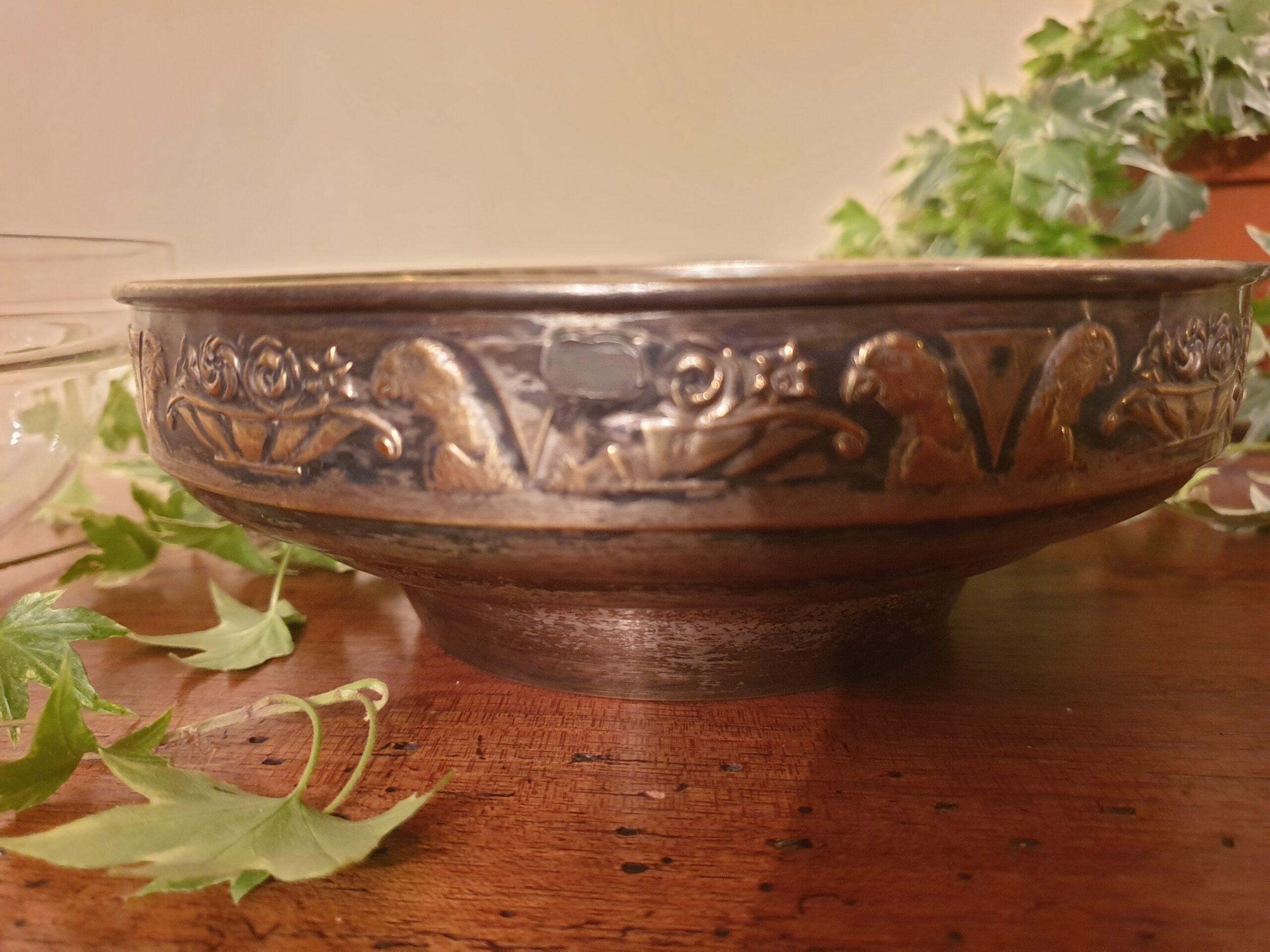 Contenu : 1 coupe en laiton argenté, 1 vasque en verre gravé