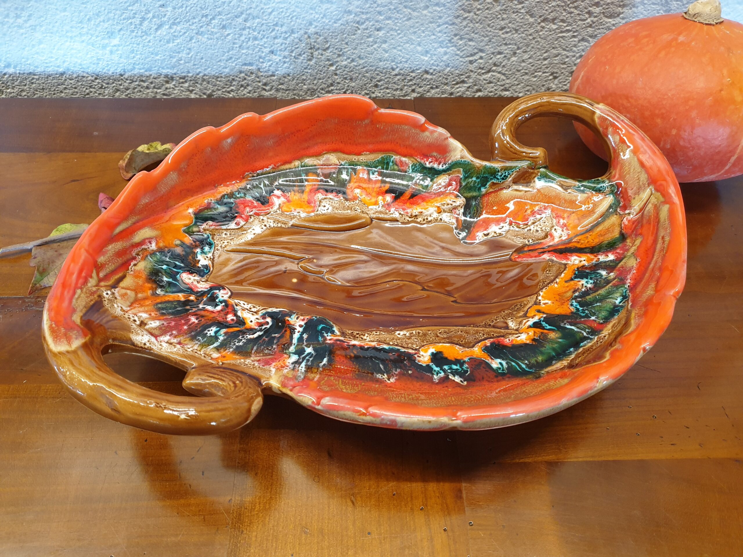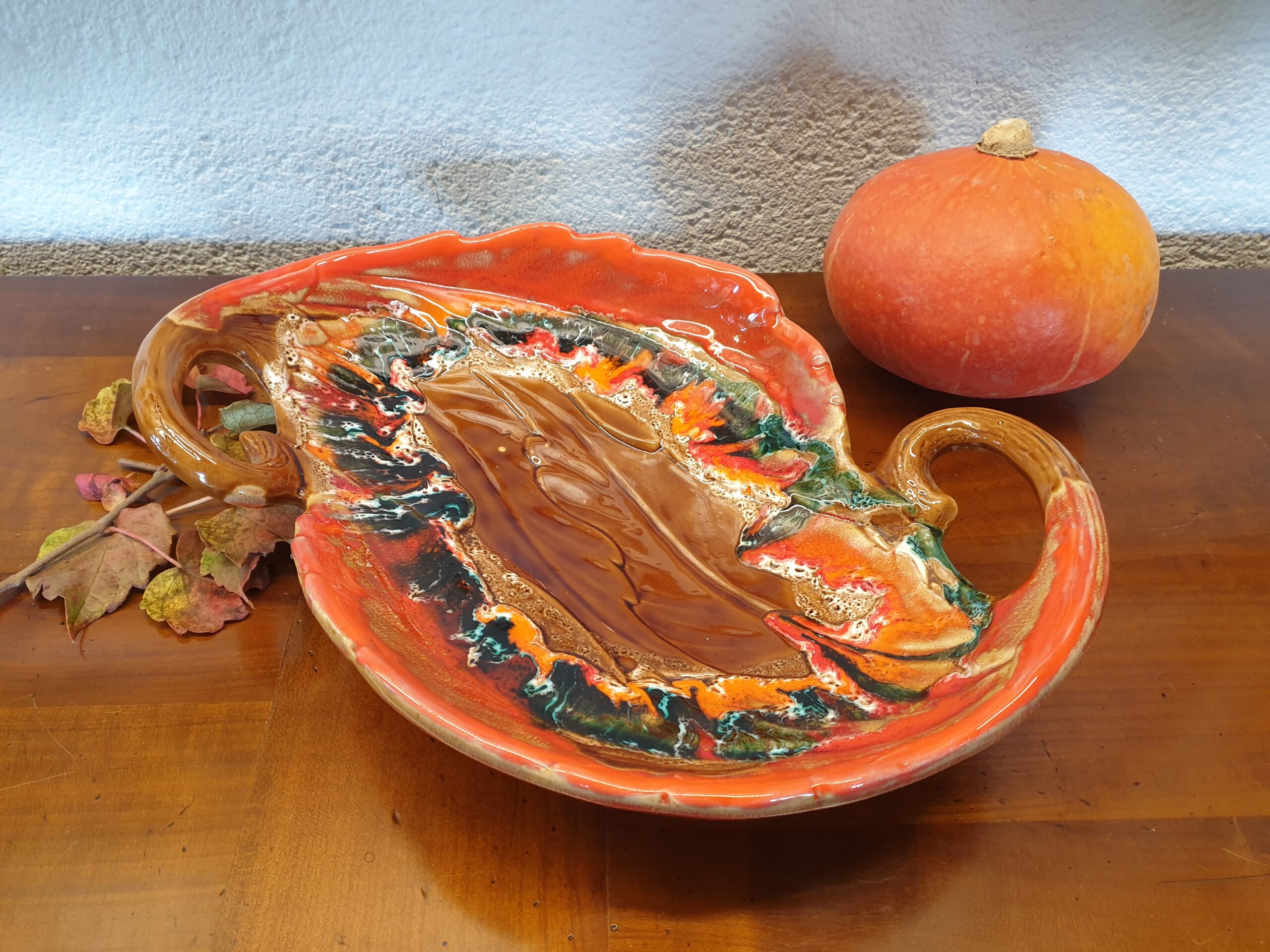 La coupe est réalisée dans une céramique fine et durable, avec un émaillage lisse qui capte la lumière et met en valeur ses formes et ses motifs orange. Le savoir-faire de Vallauris se reflète dans chaque détail, garantissant une pièce à la fois esthétique et fonctionnelle.