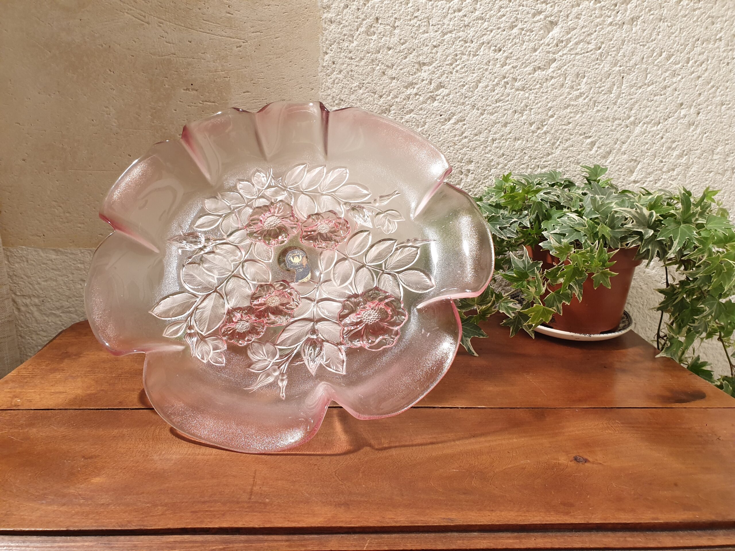 Les fleurs roses finement sculptées sur le verre confèrent à cette coupe une douceur et une légèreté qui la rendent unique. Elles ajoutent une touche florale et romantique, parfaite pour décorer vos repas ou mettre en valeur des fruits frais.