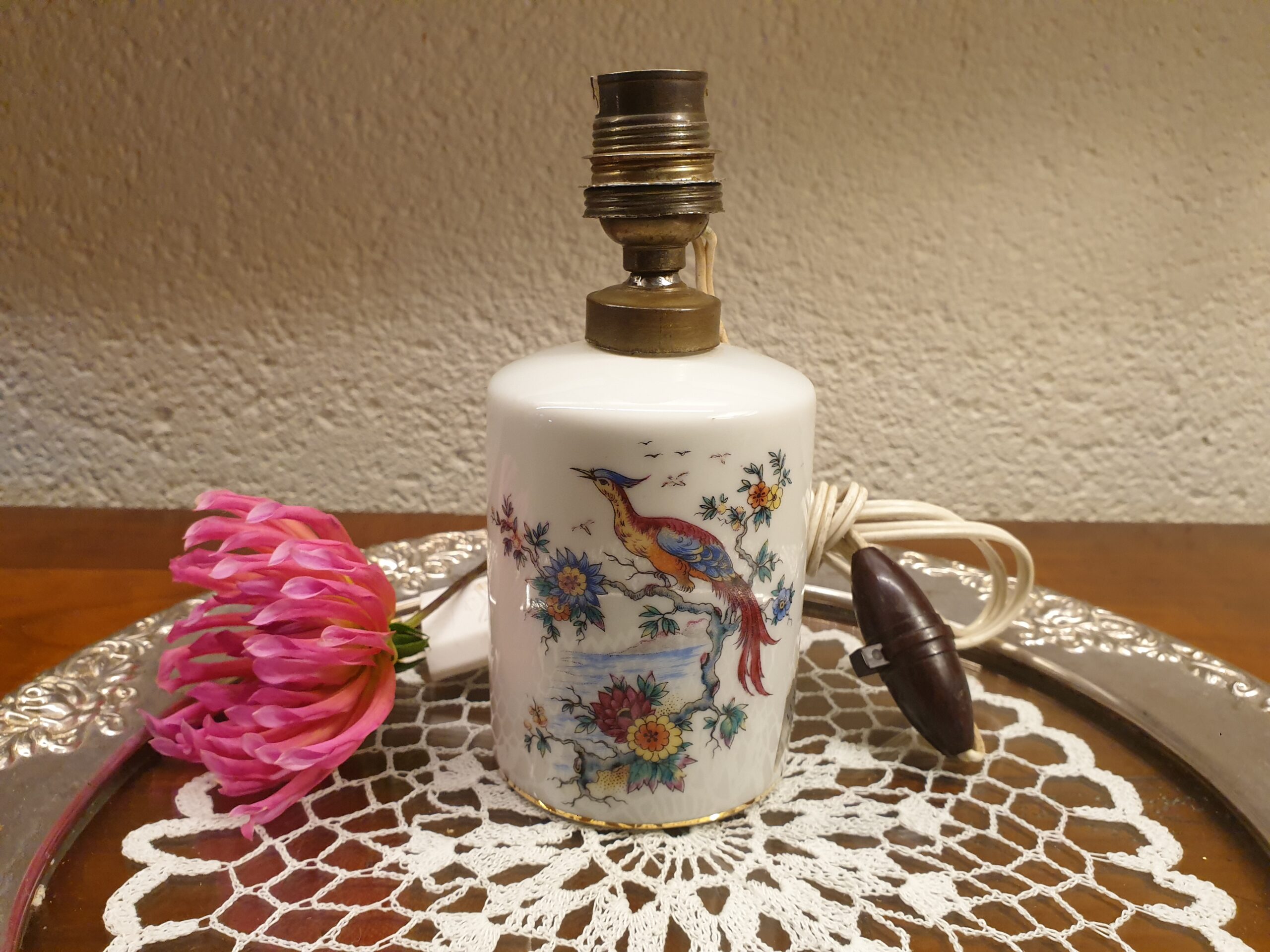Cette petite lampe ancienne en porcelaine de Limoges, ornée d’un délicat décor de fleurs et de paradisier, apportera à votre intérieur une lumière douce et chaleureuse. Parfaite pour un bureau ou une table de chevet, elle crée une ambiance élégante et apaisante, ajoutant une touche florale raffinée à votre décoration.
