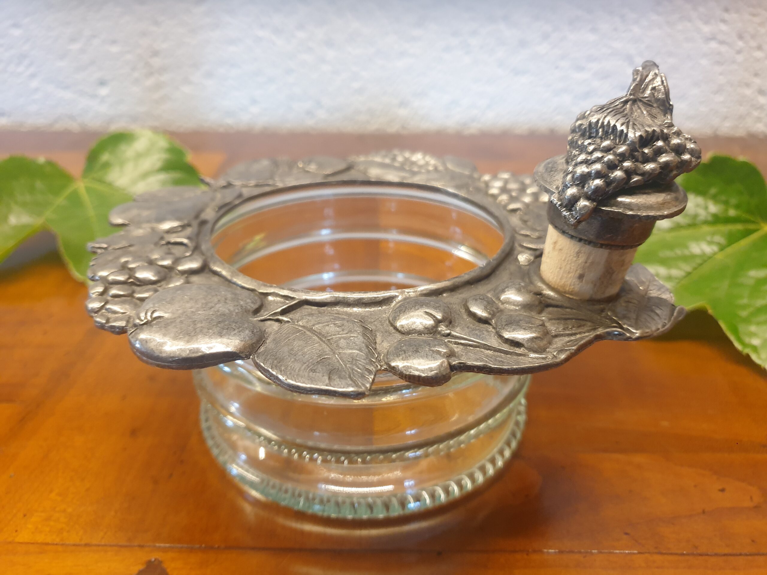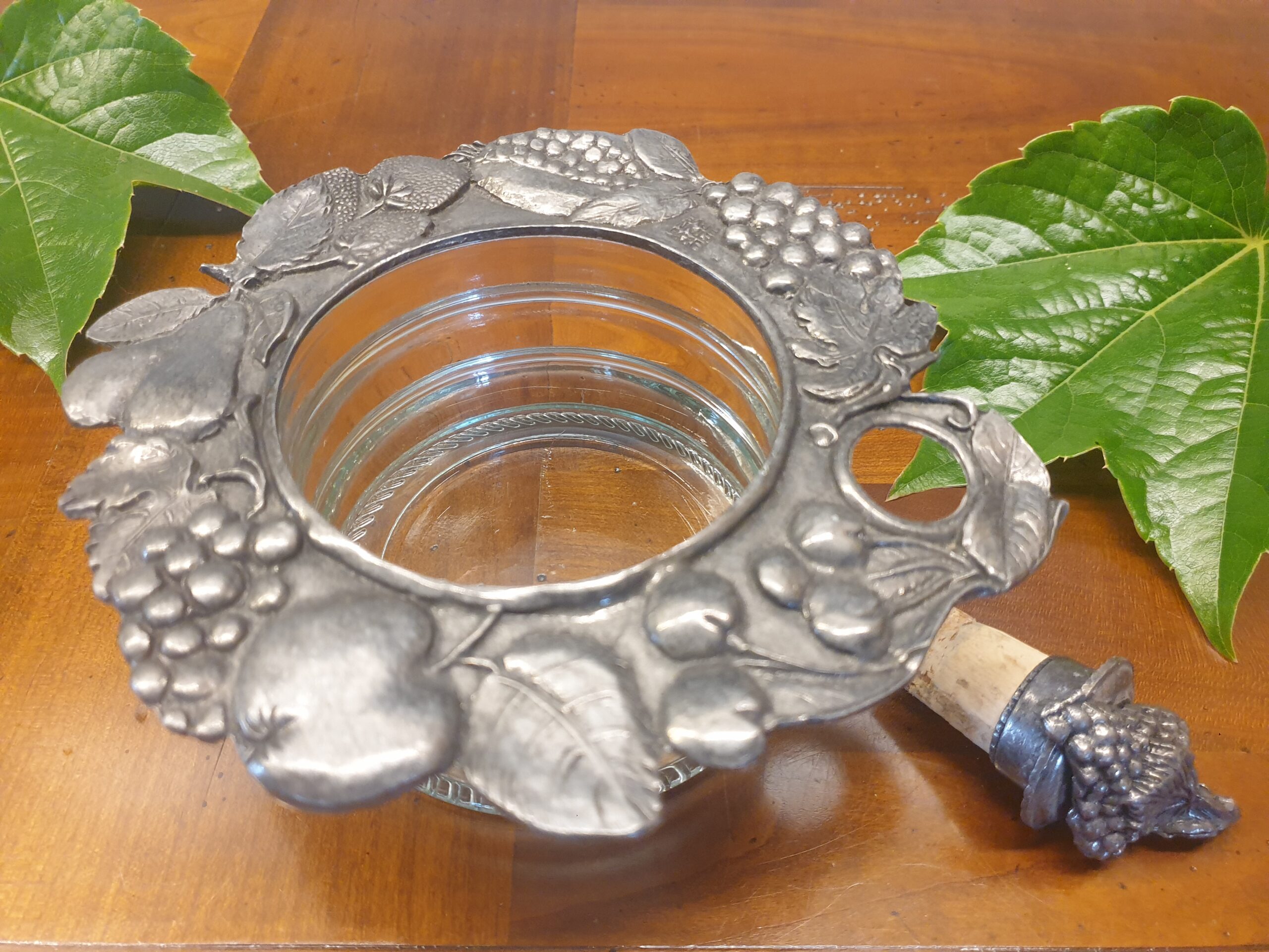 Ce porte-bouteille rend hommage à l’abondance de l’automne et au rituel du vin. Son étain patiné, ses reliefs finement ciselés et son bouchon orné d’une grappe de raisin en font une pièce empreinte de tradition et de poésie.