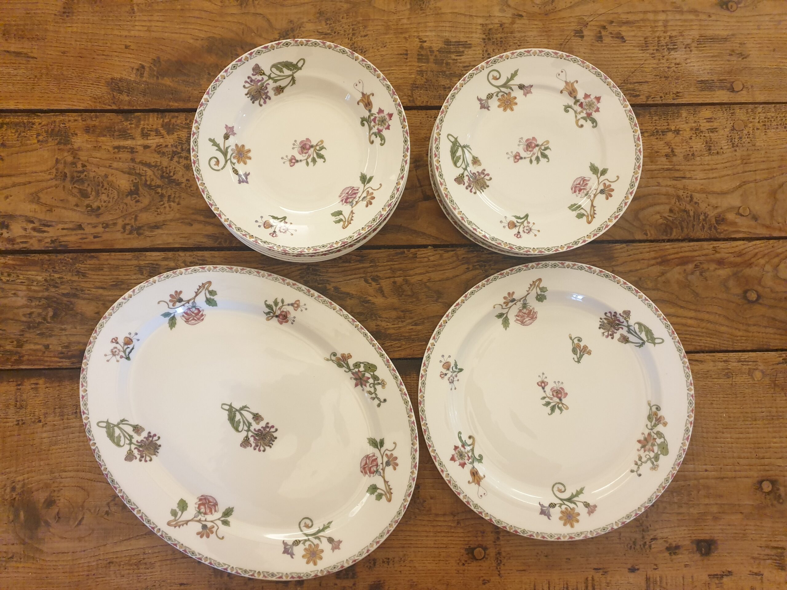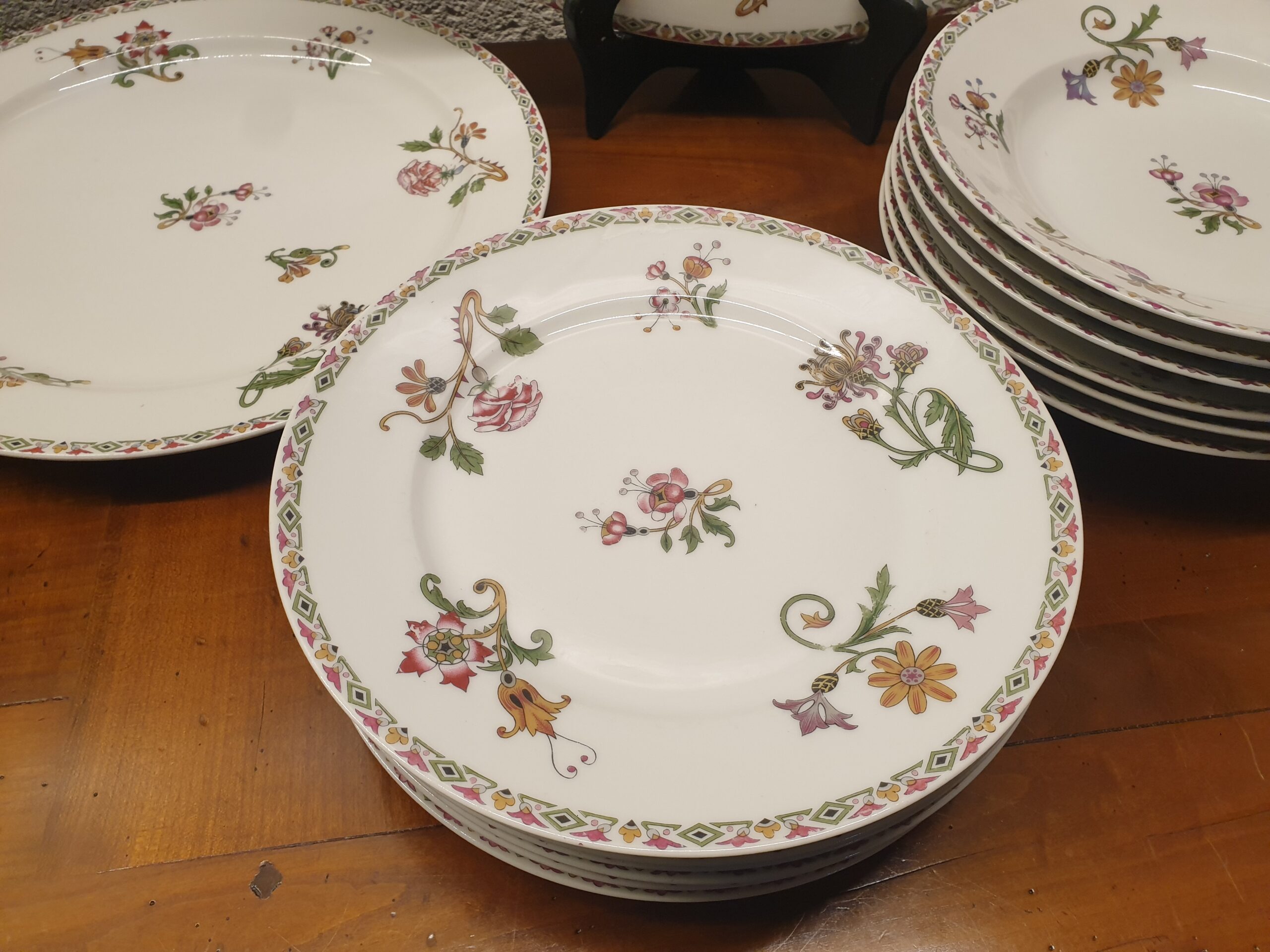 Contenu : 6 assiettes plates, 6 assiettes creuses, 1 plat de service ovale, 1 plat de service rond