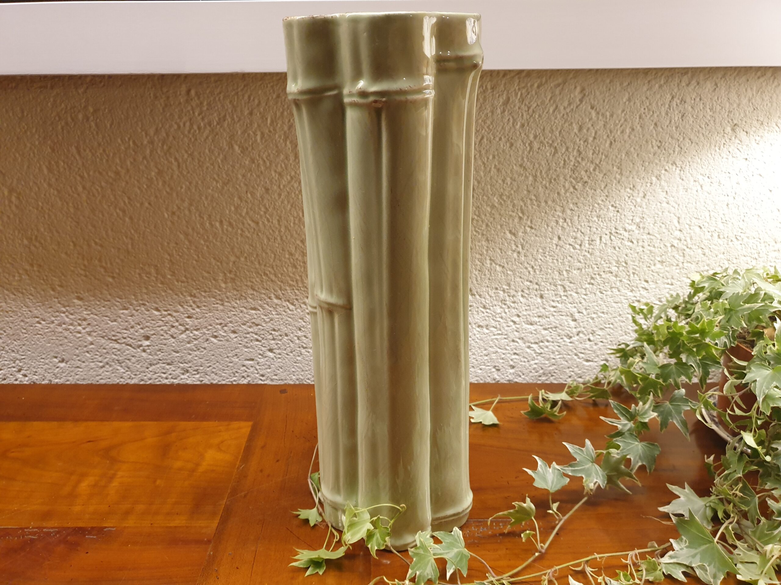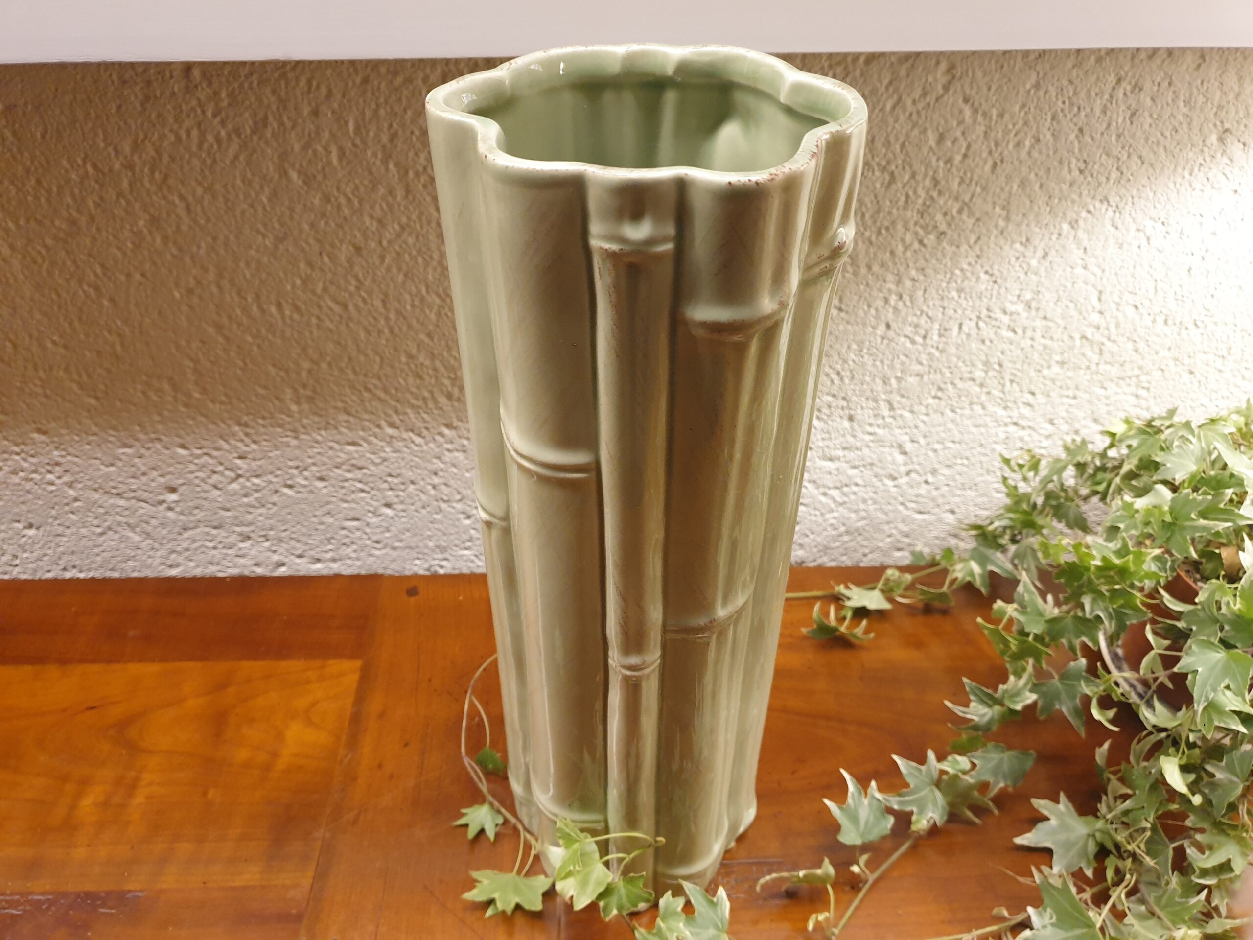 Ce vase en céramique se distingue par sa texture subtilement travaillée, imitant à la perfection les détails du bambou. Son émail lisse et brillant met en valeur son élégante teinte vert amande, apportant luminosité et fraîcheur à votre décoration.