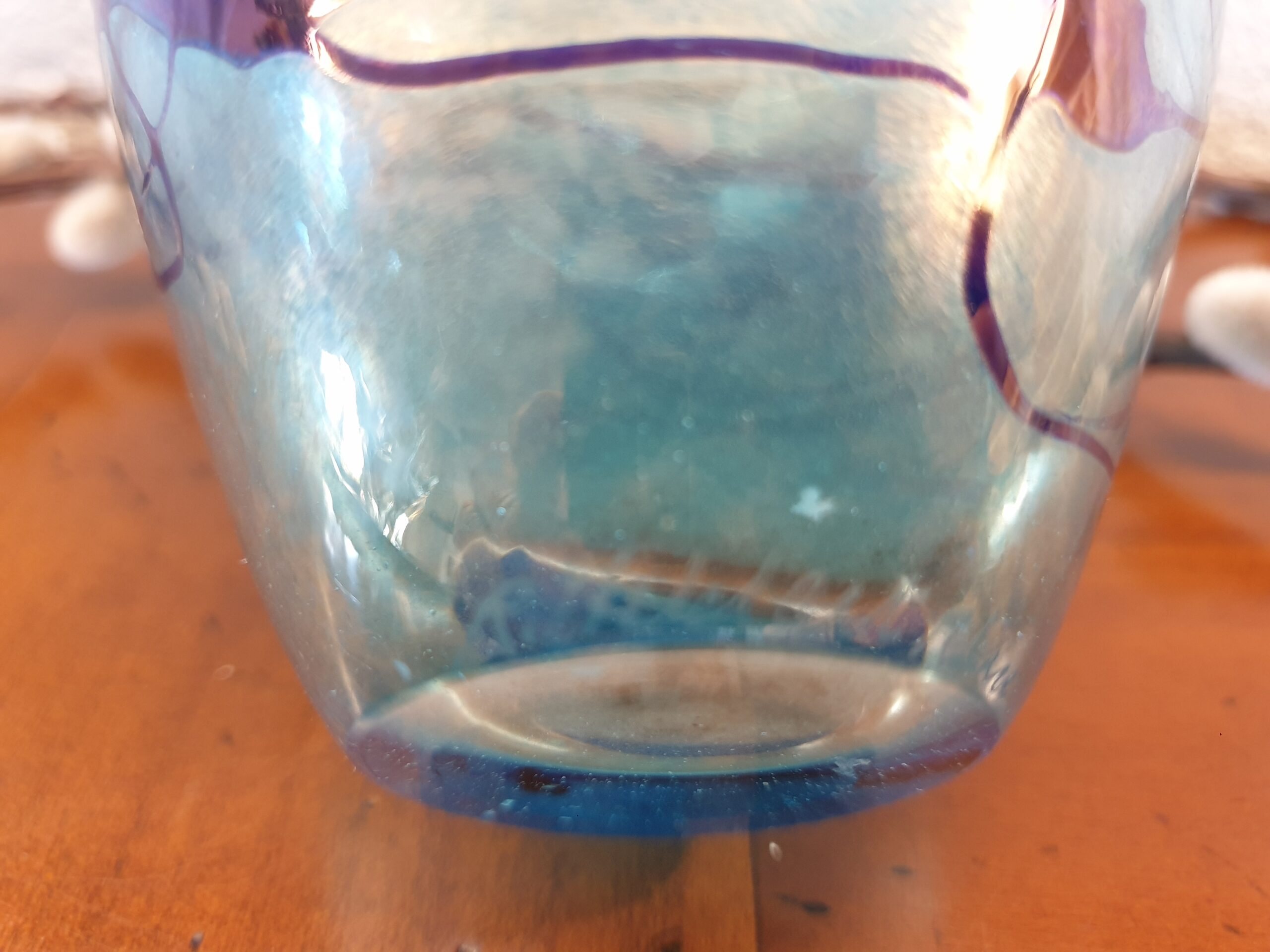 Le verre irisé capte la lumière sous différents angles, modifiant la couleur du vase. Ce phénomène crée une interaction dynamique entre l’objet et son environnement, offrant à chaque observation une expérience visuelle différente.