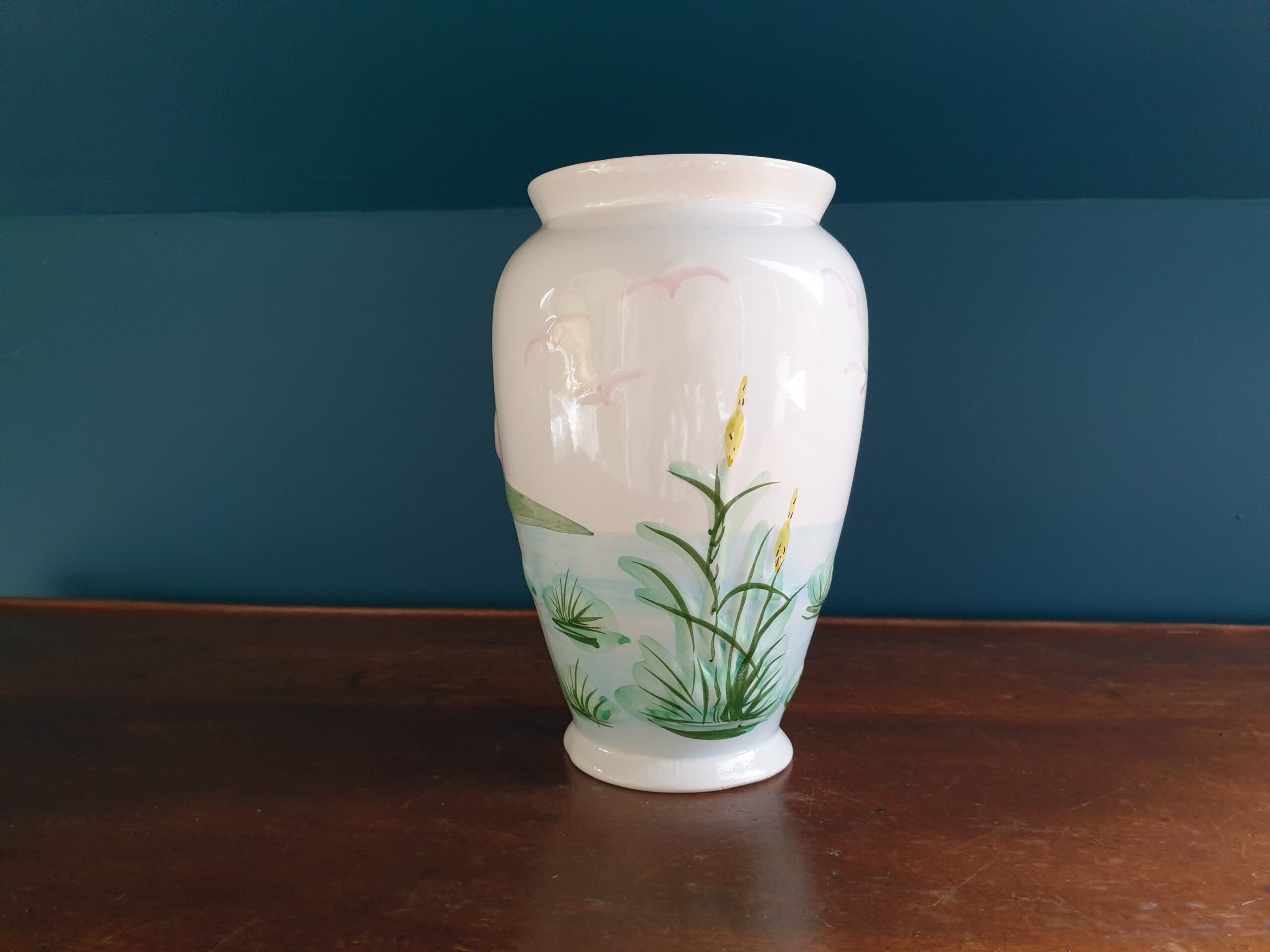 Vase Ancien aux Flamants Roses en Barbotine : Un Chef-d’Œuvre de la Faïence
