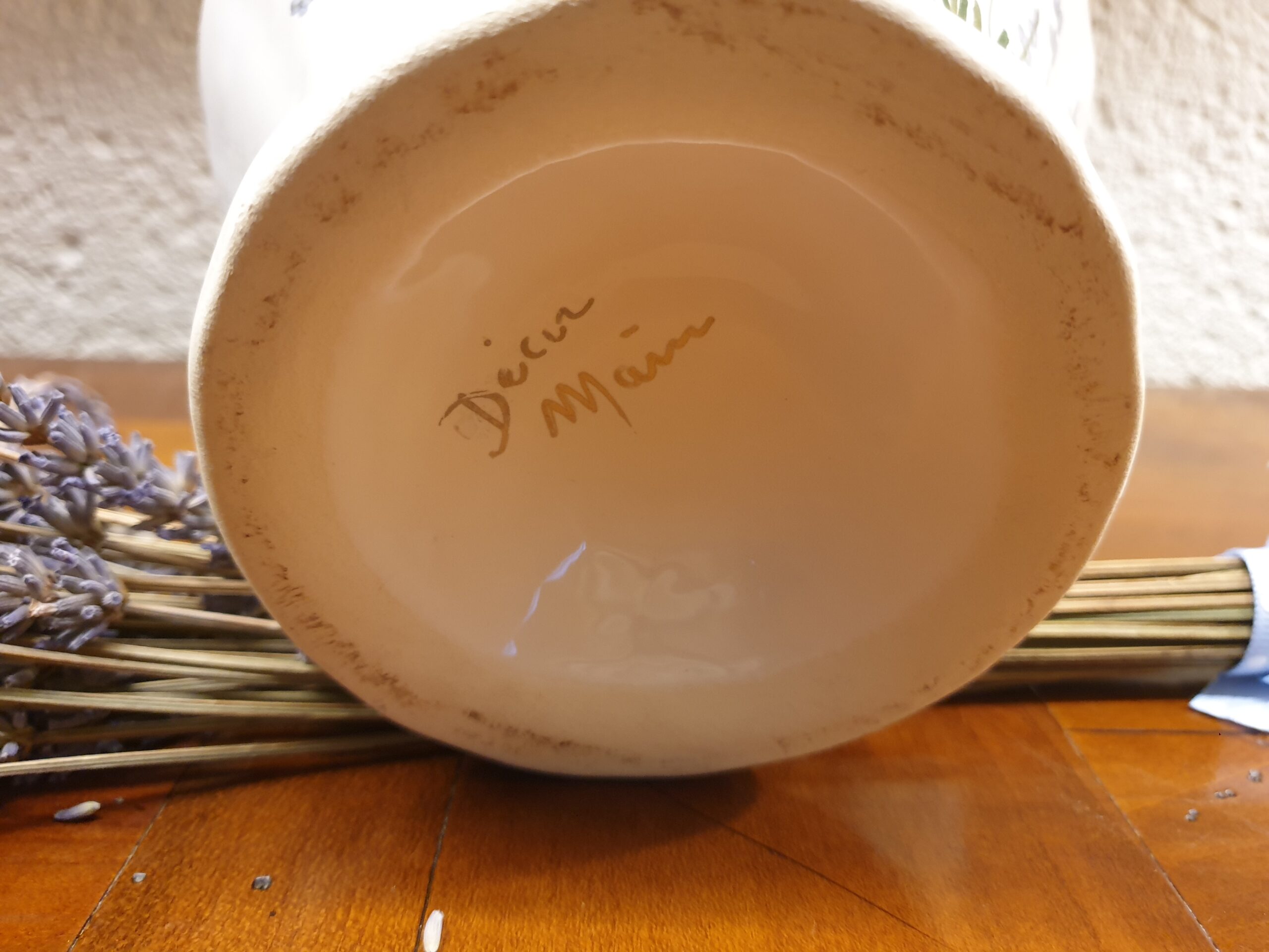 Les brins de lavande peints à la main sur ce vase sont finement réalisés, créant un motif élégant qui rappelle les paysages provençaux. Ce décor délicat ajoute une dimension authentique à la pièce.